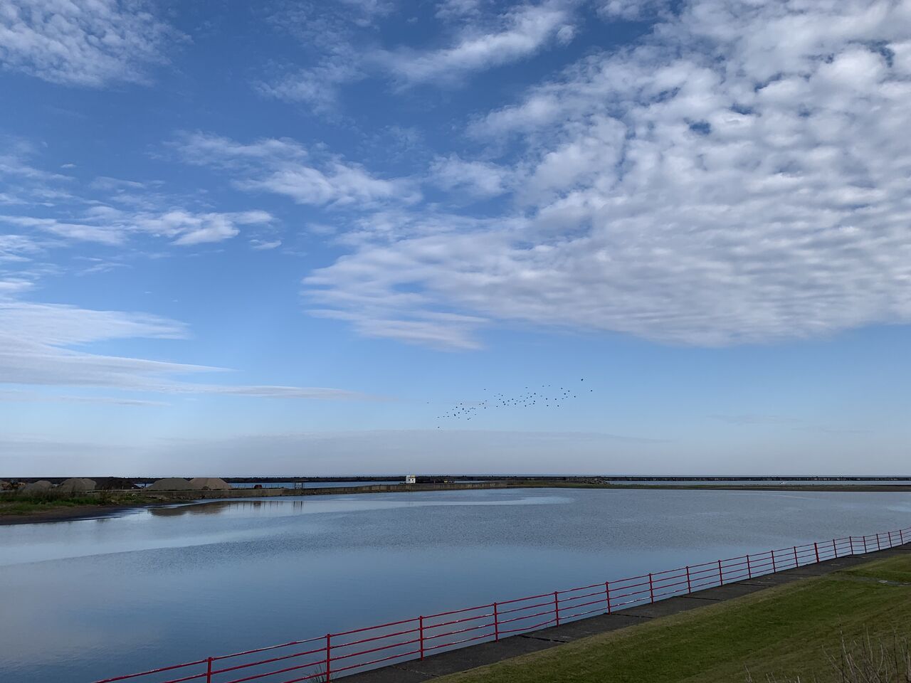 毎朝、同じ場所に行くので日々の変化には敏感になっています。今朝もいつもの場所に行ったのですが、米山は雲に隠れ風があったので違う場所で写真を撮る。中央海岸ですが、今朝はこんな感じ。今は、雲雀が盛んに鳴いています。姿は見えないのですが、鳴き声だけがよ〜く聞こえるのです。運が良い時は、姿を見ることができるのですが不思議な鳥です。ここの景色も随分変わりました。海が狭くなり砂浜ばかりになっています。これからもっと変化するでしょうね。