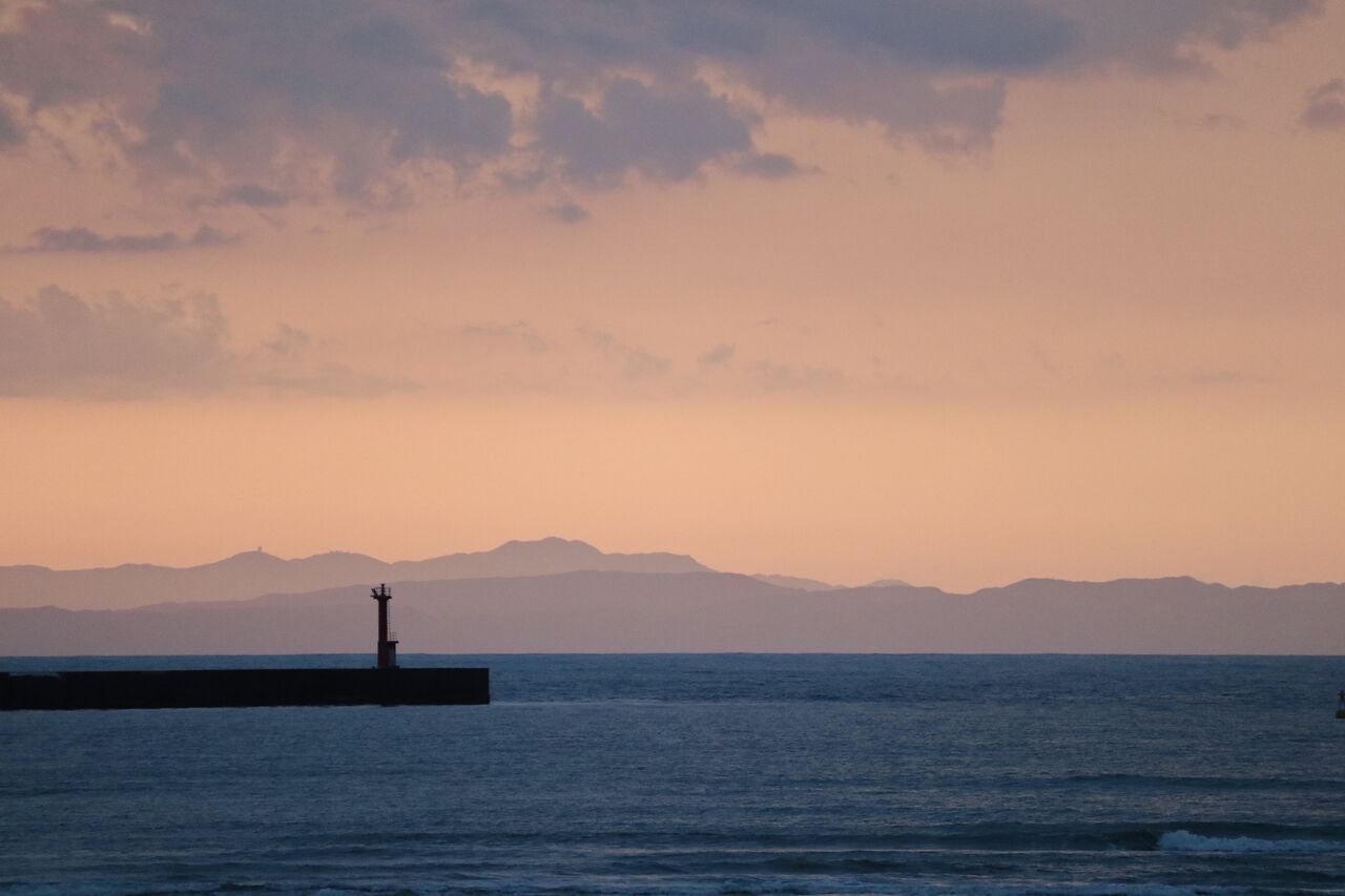 昨日の夕焼けは凄かった。曇っていたので夕陽を撮りに行かなかったのです。夕方のニュースを見ていると新潟市からの映像に夕焼け空。もしかしてとベランダから外を見ても曇り空。でももしかしたらと18時半を過ぎてましたが、海に行ってみることにしたのです。しかし、やはり曇り空のまま。それでも佐渡島がよく見え薄いオレンジ色の空になっています。雲の中の太陽が照らしているのでしょう。