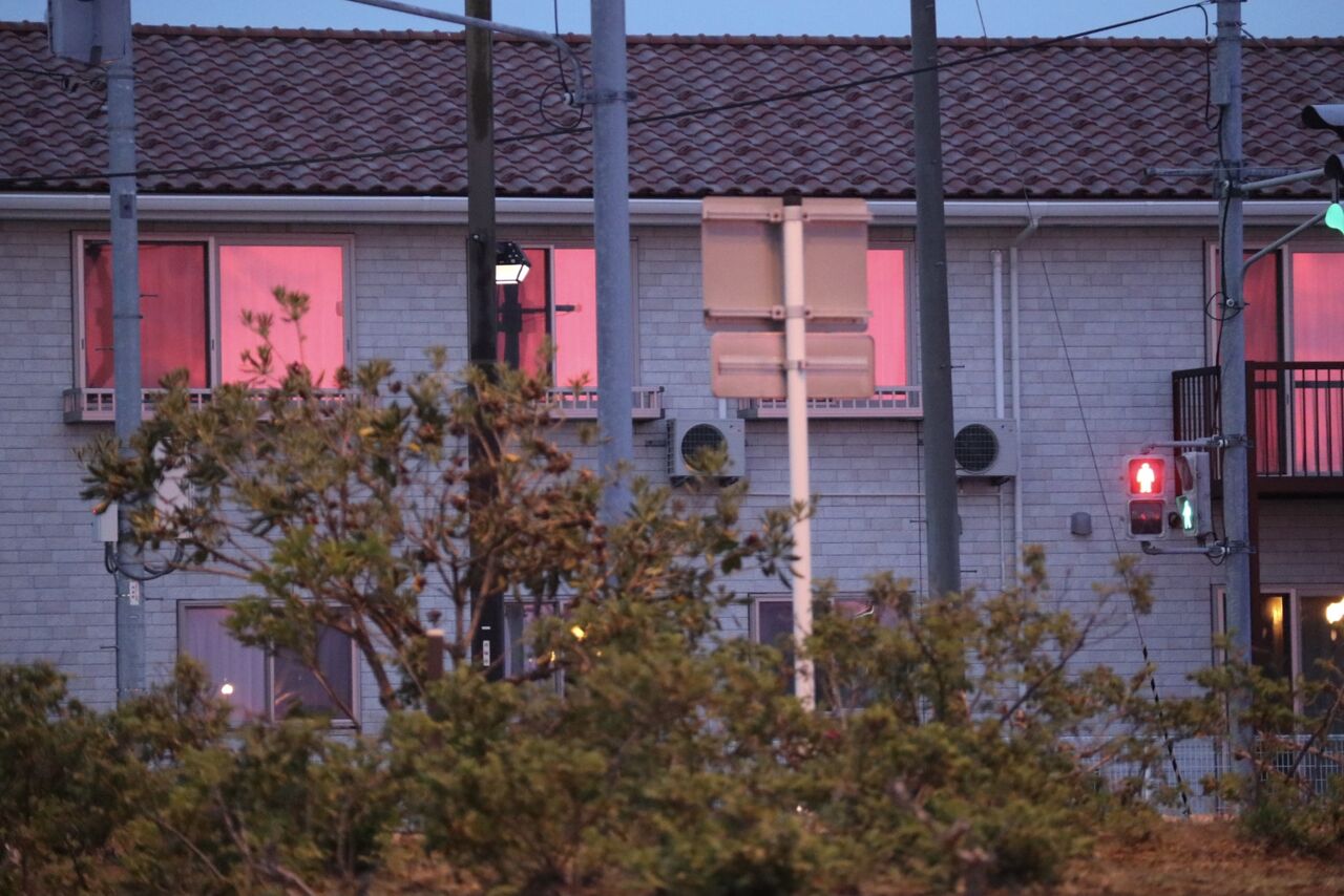 しばらくすると雲の中から赤い色が出てくる。ゆっくり曇り空が赤く染まって行くのがわかる。すると空が真っ赤に染まり久しぶりのマジックアワー。いや〜あんなに真っ赤になるものなんだと思うほど空が赤くなる。夕焼け空に照らされる家の窓ガラスがピンク色になっているではありませんか。自然って凄いパワーがあるんだと感動してしまった。